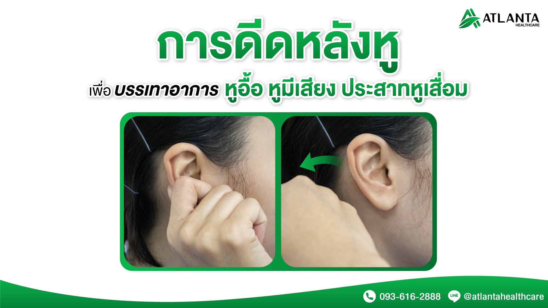 3 การดีดหลังหู(鸣天鼓)ตำแหน่งอยู่บริเวณหลังศรีษะ โดยใช้ฝ่ามือทั้ง 2 ข้างแนบที่รูหู บิดข้อมือไปที่ด้านหลังหู เพื่อให้นิ้วชี้ นิ้วกลาง นิ้วนาง และนิ้วก้อย อยู่ตรงพอดีกับบริเวณท้ายทอย ค่อย ๆ ดีดนิ้วเป็นจังหวะจากเบาไปหนัก ทำทีละข้างหรือจะทำพร้อมกันทั้งสองข้างก็ได้ สามารถทำได้ทุกเวลา ท่านี้สามารถบรรเทาอาการหูอื้อ หูมีเสียงที่ถูกรบกวนจนเกิดความรำคาญ